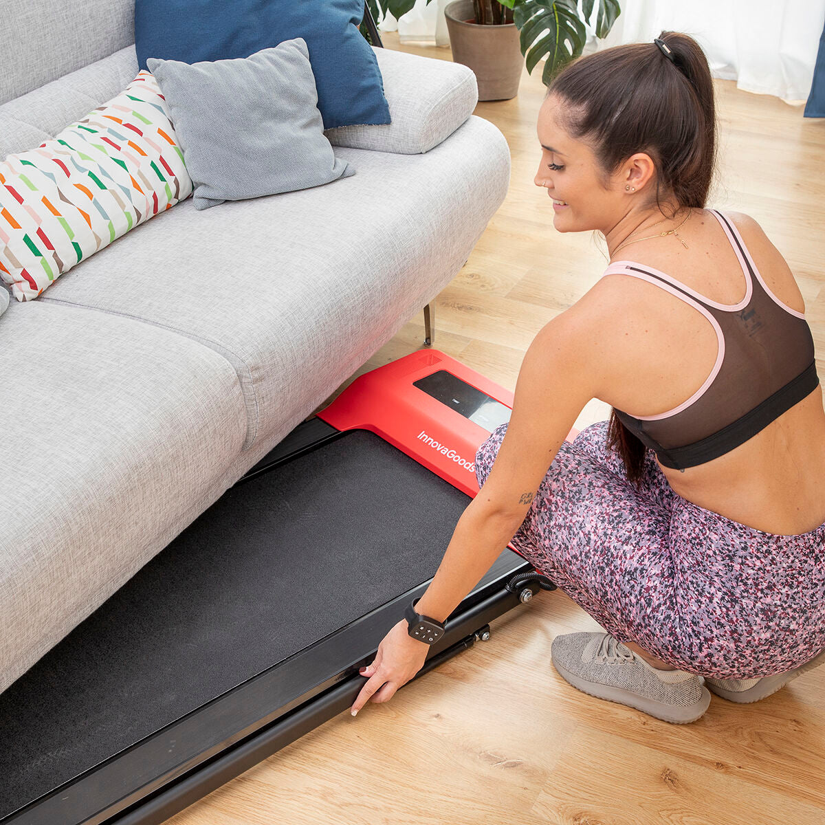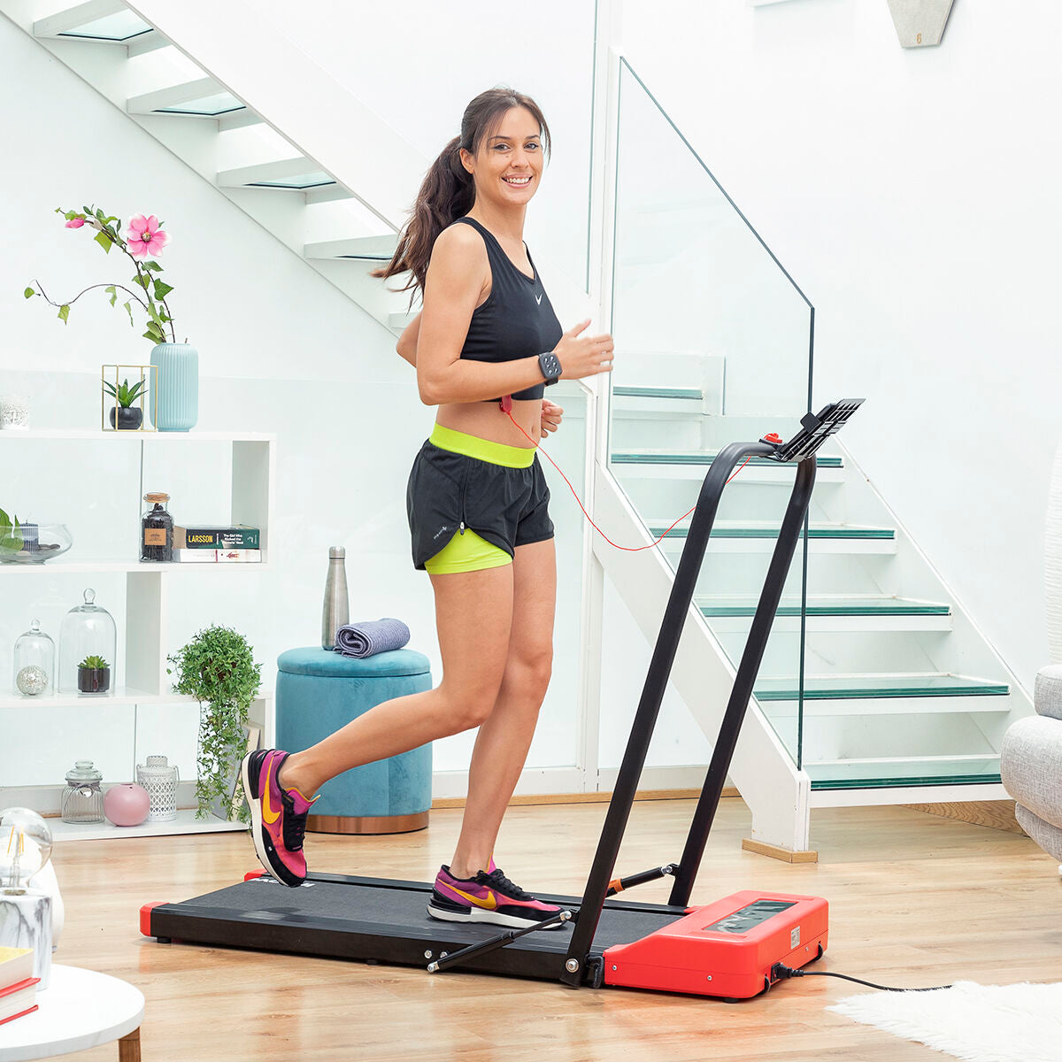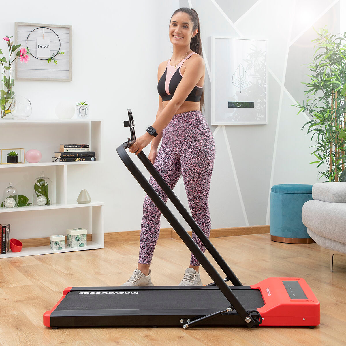 Kokoontaitettava kävely- ja juoksumatto, jossa on kaiuttimet ja kaukosäädinranneke Foljog InnovaGoods